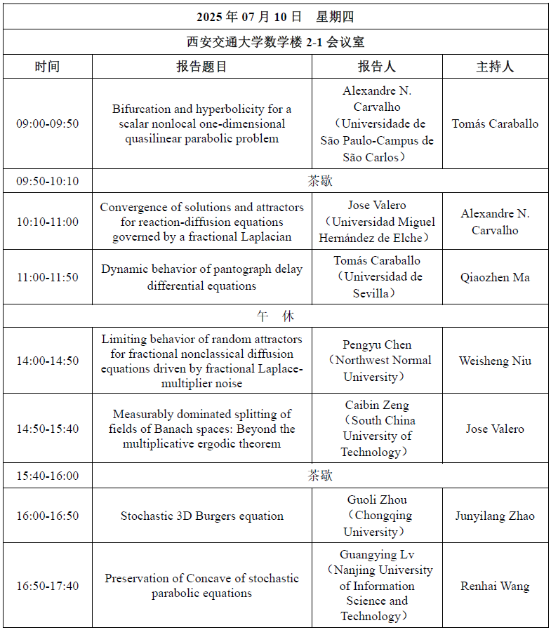 为了加强非线性泛函分析、无穷维动力系统及相关领域的学术交流与合作,于2025年7月8日—10日在西北大学和西安交通大学举办“非线性泛函分析与无穷维动力系统学术研讨会”。本次研讨会由国家天元数学西北中心主办,西安交通大学云顶国际4008服务平台、西北大学数学学院、西安电子科技大学云顶国际4008服务平台联合承办。本次研讨会旨在交流讨论无穷维动力系统及相关领域的前沿问题,并邀请国内无穷维动力系统领域的知名专家学者就相关领域的热点做学术报告。