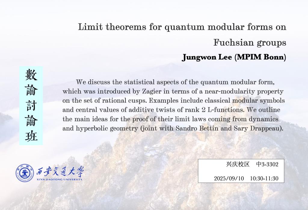 【数论讨论班】马克思·普朗克数学研究所Jungwon Lee(2025.09.10)